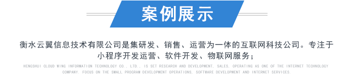 衡水云翼信息技術(shù)有限公司是集研發(fā)、銷售、運(yùn)營為一體的互聯(lián)網(wǎng)科技公司。專注于小程序開發(fā)運(yùn)營、軟件開發(fā)、物聯(lián)網(wǎng)服務(wù)。